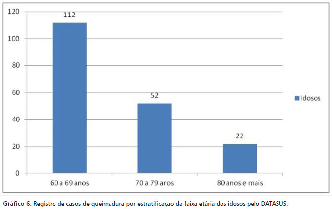 Apesar de o grupo de idosos, durante os cinco anos analisados, ser o que registrou menos casos, foi constatado que a ocorrência de queimaduras neste grupo está relacionada ao uso de substâncias inflamáveis17.